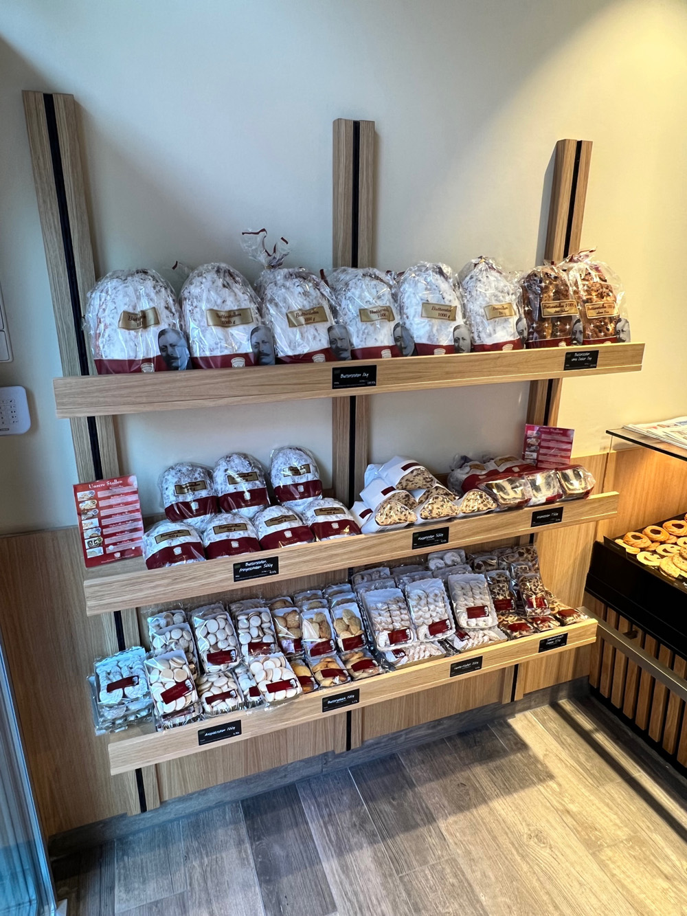 Durch die Thekenkonstruktion mit Glasaufsatz wird eine optimale Warenpräsentation gewährleistet und die Kunden erhalten durch den gläsernen Bäckerarbeitsplatz einen Einblick in die Zubereitung der Backwaren.