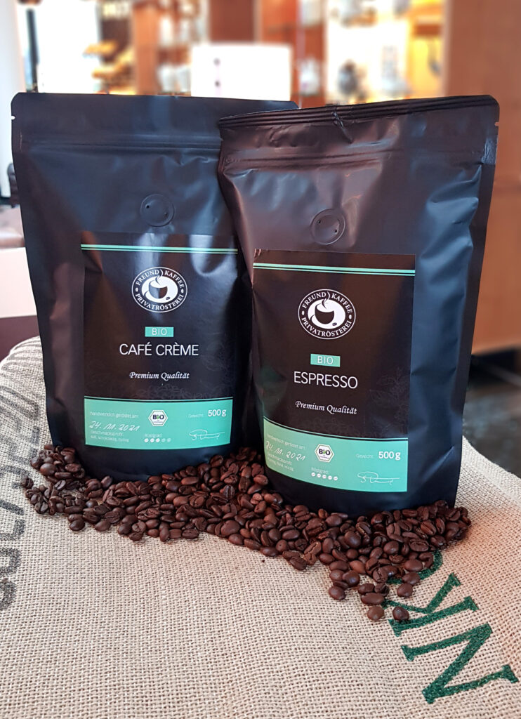 BIO Café Crème: eine edle Mischung aus 80 % Arabica- und 20 % Robustabohnen.