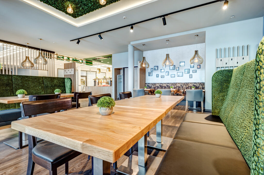 Sei es das großzügige Bäckerei-Café, die moderne Inneneinrichtung für eine neue Sushi-Bar, die zeitgemäße Umgestaltung eines Fitness-Centers oder der hochwertige Innenausbau von Büroräumen: So vielfältig unsere Konzepte und Projekte auch sind, alle vereint ein hohes Maß an Funktionalität, Effizienz und Ästhetik.
