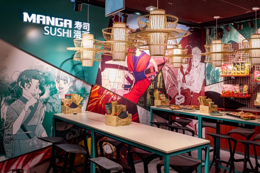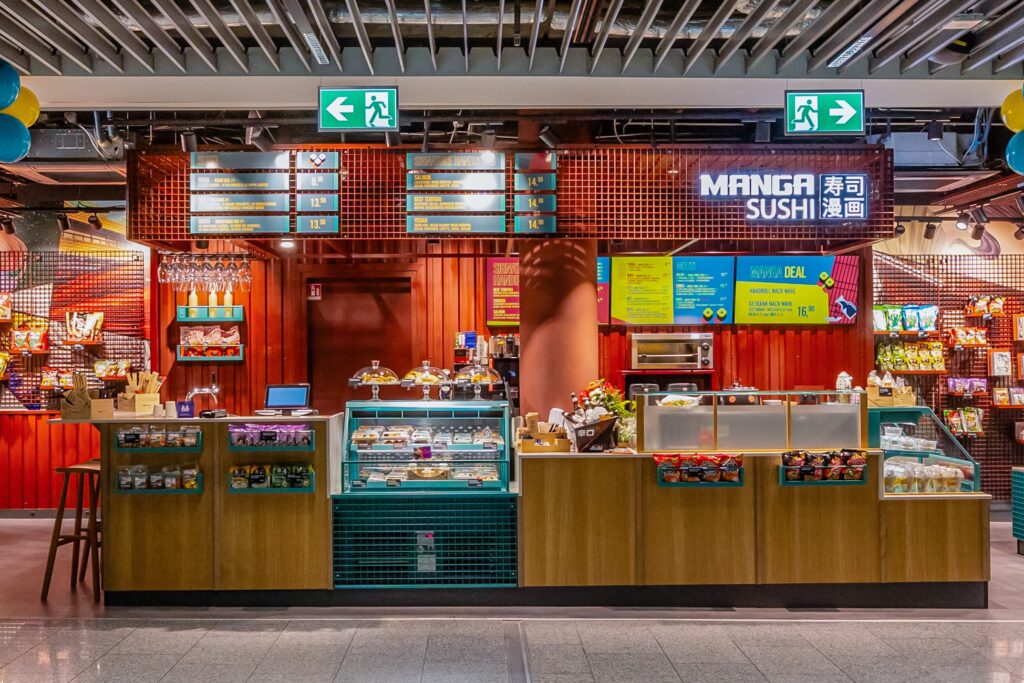 Bei Manga Sushi trifft die ruhige Ästhetik der Sushi-Meister auf die lebendigen Farben der Manga-Welt. Für Lagardère Travel Retail durften wir das neue Hybridkonzept zum Leben erwecken: