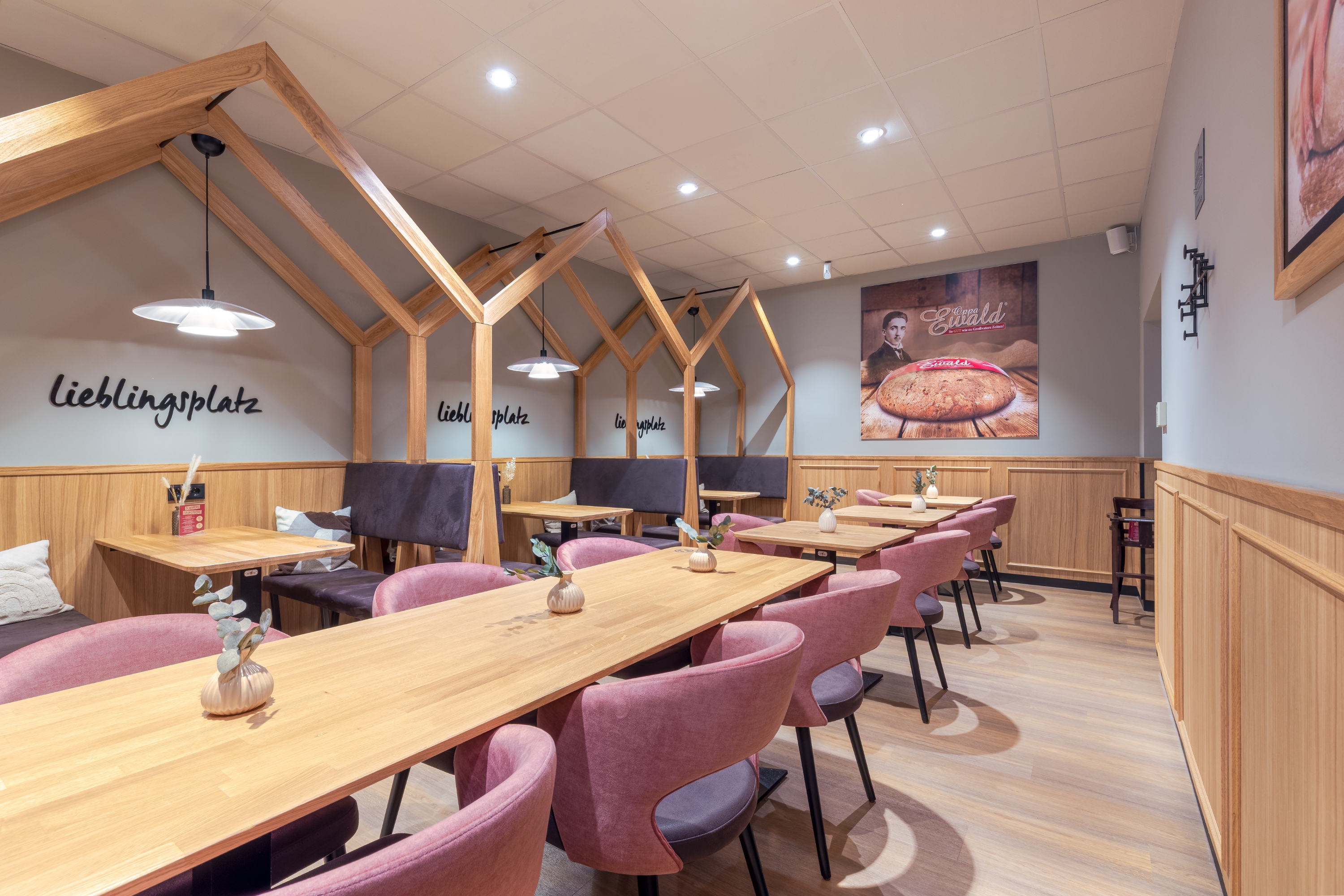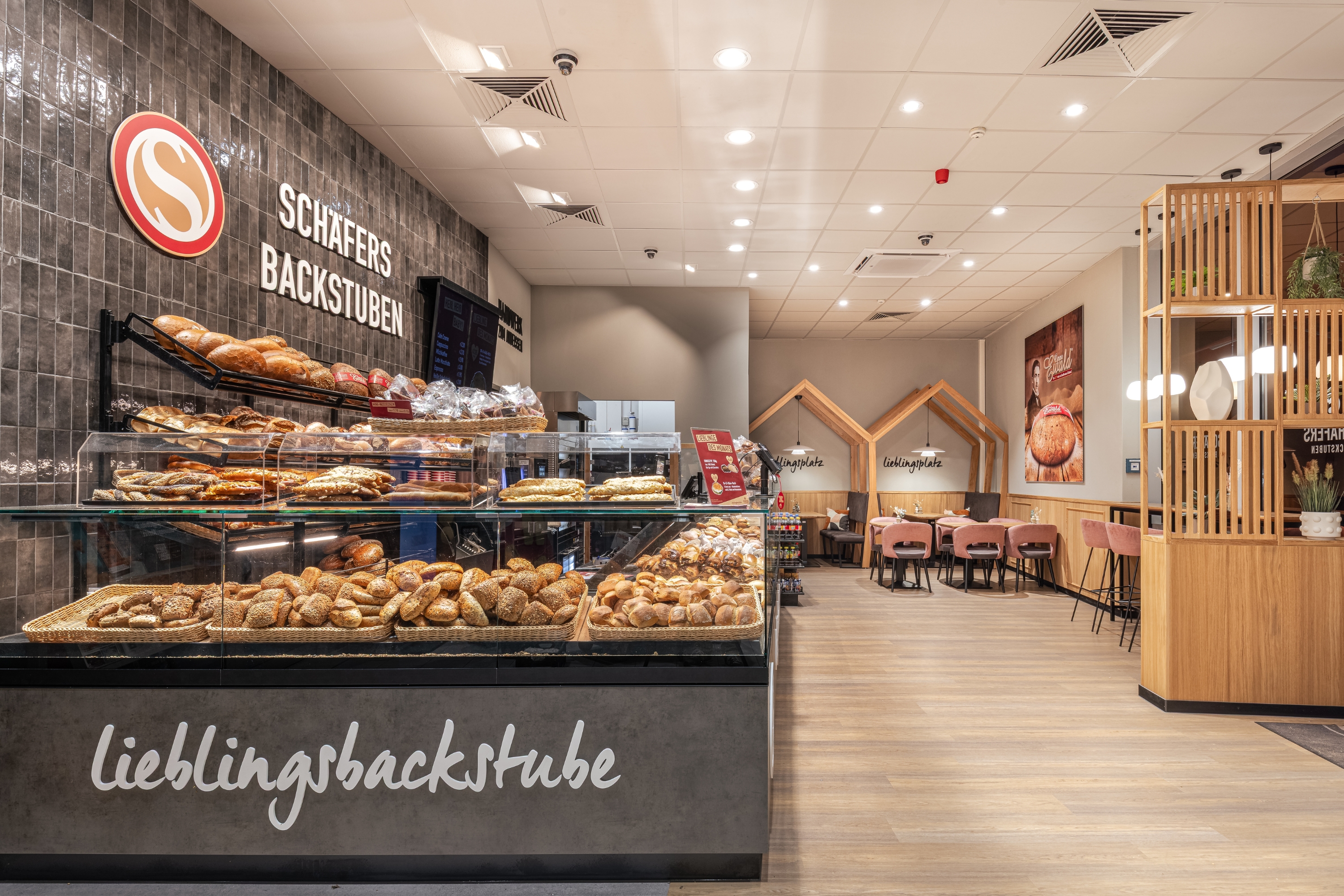 Das ist die Idee hinter zwei Projekten, die wir für Schäfers Backstuben realisiert haben. Nicht weit weg vom Einkaufstrubel, aber mit entspannter Atmosphäre statt Stress-Modus.