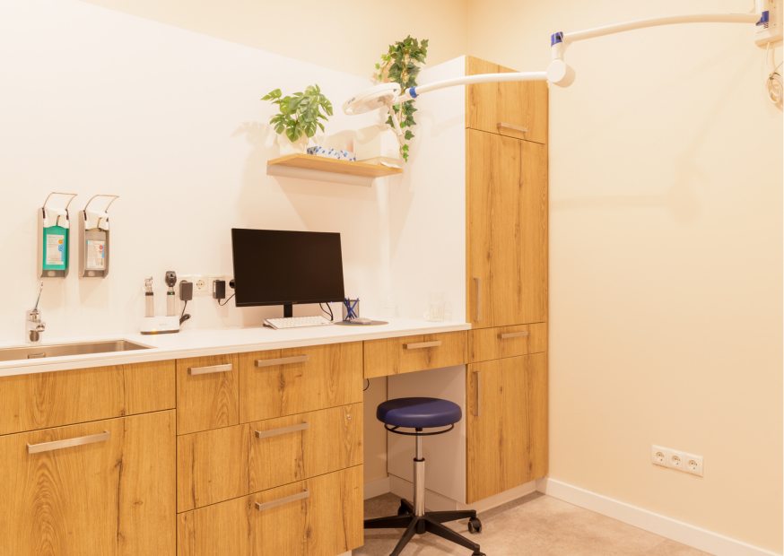 - die erhöhten Abstellmöglichkeiten für Körbchen am Empfang und in den Wartebereichen